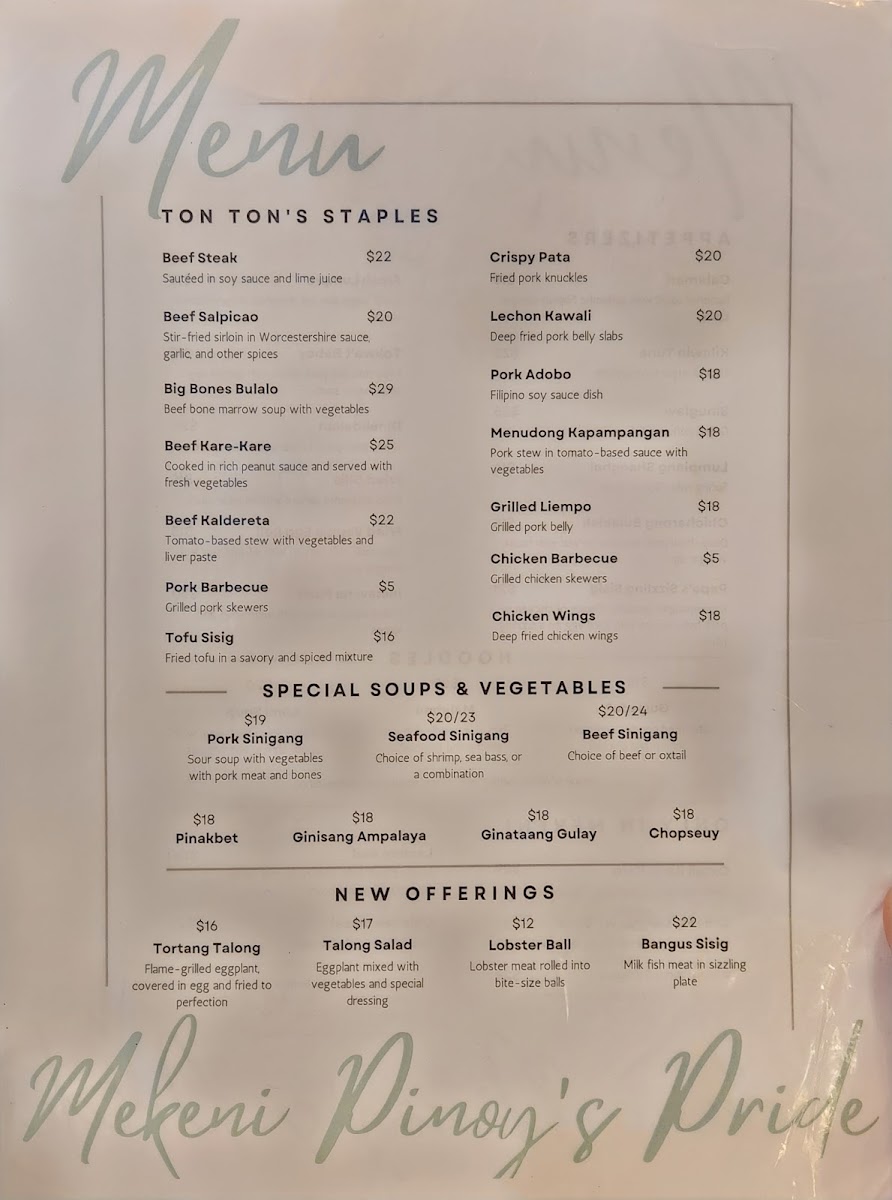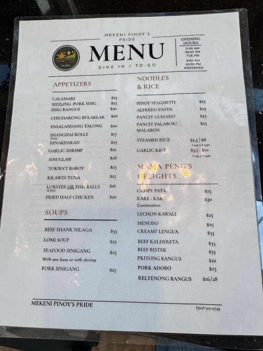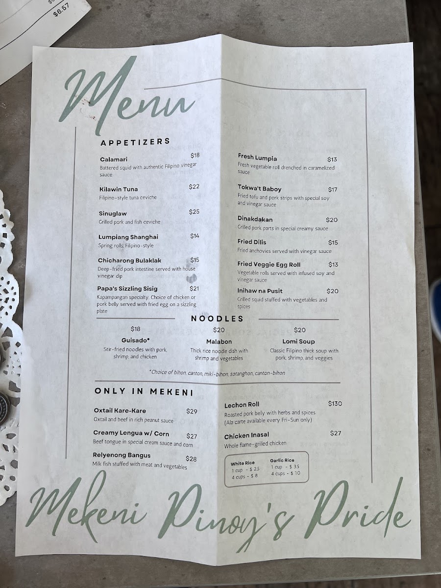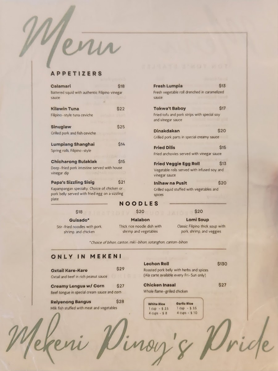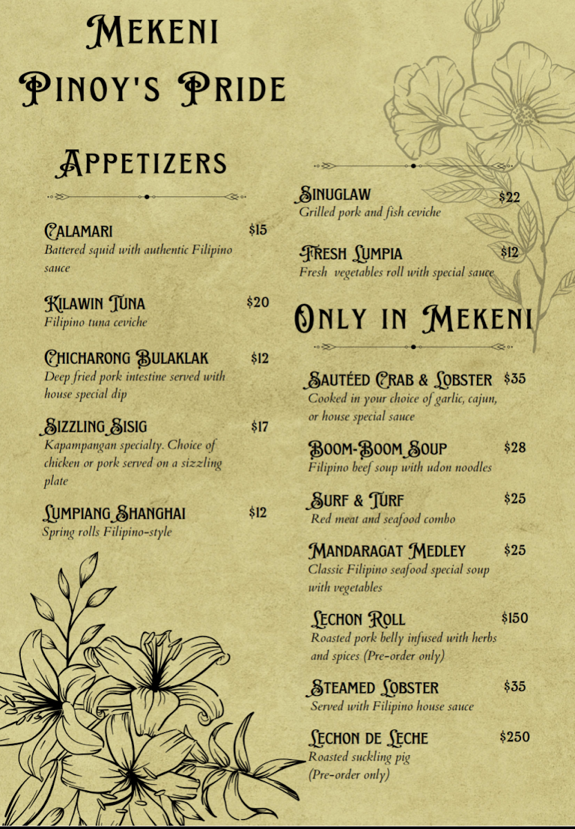 Mekeni Pinoy's Pride Menu